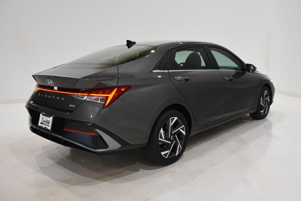 This Elantra Hybrid Limited is nicely equipped with Active Cruise Control, Alloy wheels, Apple CarPlay & Android Auto, Auto High-beam Headlights, Auto-dimming Rear-View mirror, Automatic temperature control, Brake assist, Emergency communication system: Bluelink+, Exterior Parking Camera Rear, Front dual zone A/C, Fully automatic headlights, Heated door mirrors, Heated front seats, Memory seat, Navigation System, Power door mirrors, Power driver seat, Power moonroof, Power windows, Remote keyless entry, Security system, Ventilated front seats, 17" x 7.0J Alloy Wheels, 4-Wheel Disc Brakes, 8 Speakers, ABS brakes, Air Conditioning, Alloy Door Sills, AM/FM radio: SiriusXM, Bumpers: body-color, Cargo Net, Cargo Side Bins, Carpeted Floor Mats, Delay-off headlights, Driver door bin, Driver vanity mirror, Dual front impact airbags, Dual front side impact airbags, Electronic Stability Control, Front anti-roll bar, Front Bucket Seats, Front Center Armrest, Front reading lights, Front wheel independent suspension, Heated & Ventilated Front Bucket Seats, H-Tex Leatherette Seat Trim, Illuminated entry, Leather Shift Knob, Leather steering wheel, Low tire pressure warning, Occupant sensing airbag, Outside temperature display, Overhead airbag, Overhead console, Panic alarm, Passenger door bin, Passenger vanity mirror, Power steering, Radio: AM/FM/HD/SiriusXM Display Audio, Rear seat center armrest, Rear side impact airbag, Rear window defroster, Speed control, Speed-sensing steering, Split folding rear seat, Steering wheel mounted audio controls, Tachometer, Telescoping steering wheel, Tilt steering wheel, Traction control, Trip computer, Turn signal indicator mirrors, and Variably intermittent wipers.