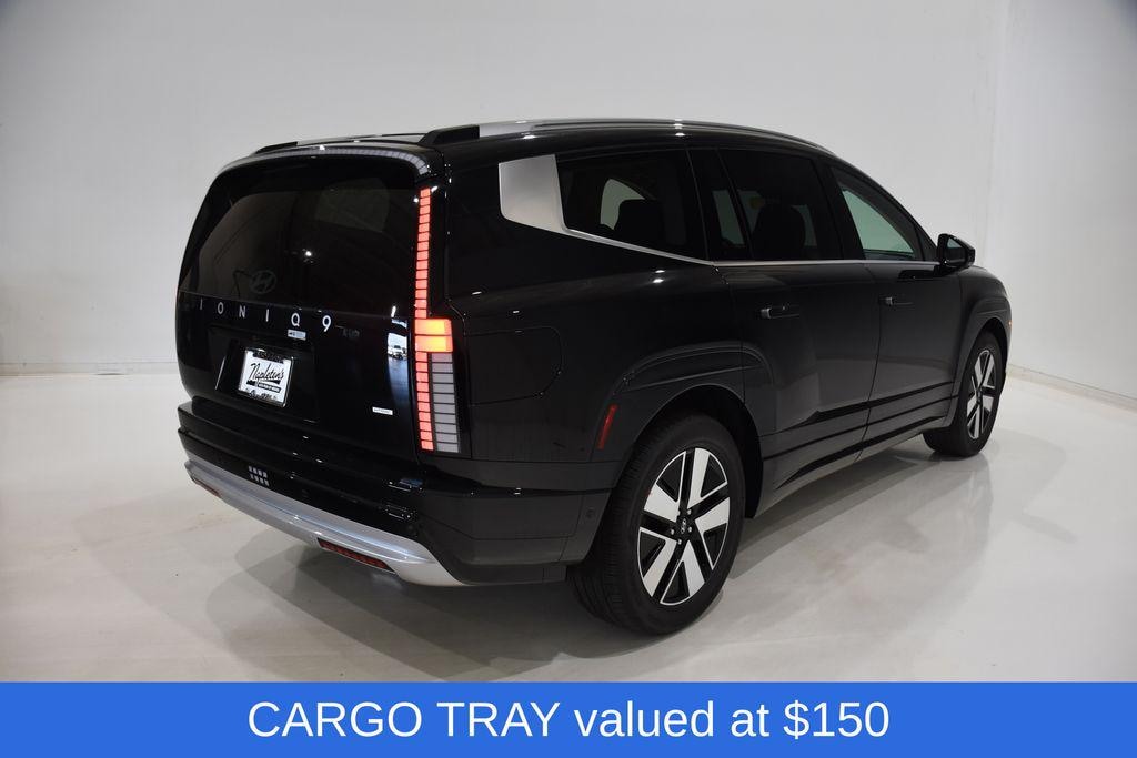 Abyss Black This IONIQ 9 SEL is nicely equipped with Active Cruise Control, Alloy wheels, Apple CarPlay & Android Auto, Auto High-beam Headlights, Auto-dimming Rear-View mirror, Automatic temperature control, Brake assist, Emergency communication system: Bluelink+, Front dual zone A/C, Fully automatic headlights, Heated door mirrors, Heated front seats, Heated rear seats, Illuminated entry, Navigation System, Occupant sensing airbag, Power door mirrors, Power driver seat, Power Liftgate, Power passenger seat, Power windows, Rain sensing wipers, Remote keyless entry, Security system, Ventilated front seats, 20" x 8J Alloy Wheels, 3rd row seats: split-bench, 4-Wheel Disc Brakes, 8 Speakers, ABS brakes, Air Conditioning, AM/FM radio: SiriusXM, Auto-leveling suspension, Bodyside moldings, Bumpers: body-color, Delay-off headlights, Driver door bin, Driver vanity mirror, Dual front impact airbags, Dual front side impact airbags, Electronic Stability Control, Four wheel independent suspension, Front anti-roll bar, Front Bucket Seats, Front Center Armrest, Front reading lights, Garage door transmitter: HomeLink, H-Tex Leatherette Seating Surfaces, harman/kardon® Speakers, Heated & Ventilated Front Bucket Seats, Heated steering wheel, Leather steering wheel, Low tire pressure warning, Outside temperature display, Overhead airbag, Overhead console, Panic alarm, Passenger door bin, Passenger vanity mirror, Power steering, Radio: AM/FM/SiriusXM/HD Audio System, Rear air conditioning, Rear anti-roll bar, Rear reading lights, Rear seat center armrest, Rear side impact airbag, Rear window defroster, Rear window wiper, Reclining 3rd row seat, Speed control, Split folding rear seat, Spoiler, Steering wheel mounted audio controls, Telescoping steering wheel, Tilt steering wheel, Traction control, Trip computer, Turn signal indicator mirrors, and Variably intermittent wipers.
