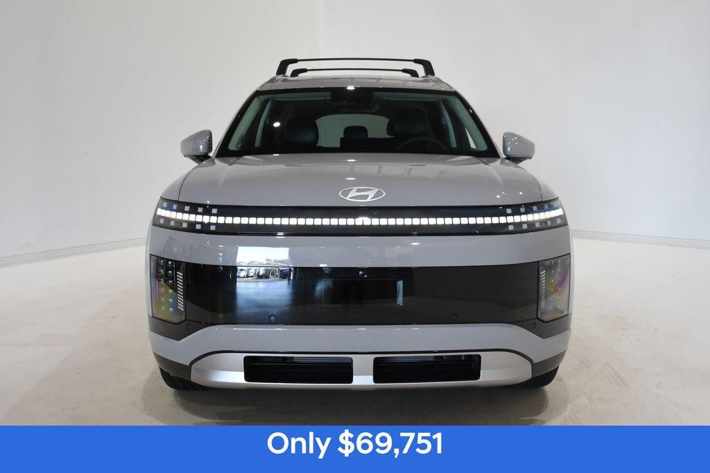 Cyber Gray This IONIQ 9 SEL is nicely equipped with 3rd row seats: split-bench, Active Cruise Control, Alloy wheels, Apple CarPlay & Android Auto, Auto High-beam Headlights, Automatic temperature control, Brake assist, Emergency communication system: Bluelink+, Front dual zone A/C, Fully automatic headlights, Garage door transmitter: HomeLink, harman/kardon® Speakers, Heated door mirrors, Heated front seats, Heated rear seats, Heated steering wheel, Navigation System, Power door mirrors, Power driver seat, Power Liftgate, Power passenger seat, Power windows, Rain sensing wipers, Remote keyless entry, Security system, Ventilated front seats, 20" x 8J Alloy Wheels, 4-Wheel Disc Brakes, 8 Speakers, ABS brakes, Air Conditioning, AM/FM radio: SiriusXM, Auto-dimming Rear-View mirror, Auto-leveling suspension, Bodyside moldings, Bumpers: body-color, Cargo Cover, Cargo Net, Cargo Organizer, Cargo Tray, Carpeted Floor Mats, Crossbars, Delay-off headlights, Driver door bin, Driver vanity mirror, Dual front impact airbags, Dual front side impact airbags, Electronic Stability Control, First Aid Kit, Four wheel independent suspension, Front anti-roll bar, Front Bucket Seats, Front Center Armrest, Front reading lights, H-Tex Leatherette Seating Surfaces, Heated & Ventilated Front Bucket Seats, Illuminated entry, Leather steering wheel, Low tire pressure warning, Occupant sensing airbag, Outside temperature display, Overhead airbag, Overhead console, Panic alarm, Passenger door bin, Passenger vanity mirror, Power steering, Radio: AM/FM/SiriusXM/HD Audio System, Rear air conditioning, Rear anti-roll bar, Rear reading lights, Rear seat center armrest, Rear side impact airbag, Rear window defroster, Rear window wiper, Reclining 3rd row seat, Speed control, Split folding rear seat, Spoiler, Steering wheel mounted audio controls, Telescoping steering wheel, Tilt steering wheel, Traction control, Trip computer, Turn signal indicator mirrors, and Variably intermittent wipers.