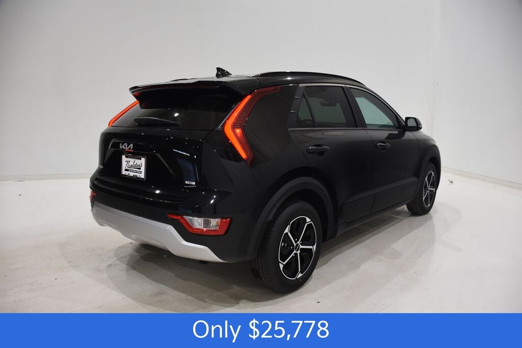 Price includes: $2000 - Kia Customer Cash. Exp. 02/02/2026 Priced below KBB Fair Purchase Price! Aurora Black Pearl This Niro EX is nicely equipped with Active Cruise Control, Alloy wheels, Apple CarPlay & Android Auto, Auto High-beam Headlights, Automatic temperature control, Brake assist, Exterior Parking Camera Rear, Front dual zone A/C, Fully automatic headlights, Heated door mirrors, Heated front seats, Navigation System, Occupant sensing airbag, Power door mirrors, Power driver seat, Power windows, Remote keyless entry, Security system, 4-Wheel Disc Brakes, 6 Speakers, ABS brakes, Air Conditioning, AM/FM radio: SiriusXM, Bumpers: body-color, Cloth & Vegan Leather-Trimmed Seats, Delay-off headlights, Driver door bin, Driver vanity mirror, Dual front impact airbags, Dual front side impact airbags, Electronic Stability Control, Emergency communication system: Kia Connect (includes 1 year free trial), Four wheel independent suspension, Front anti-roll bar, Front Bucket Seats, Front Center Armrest, Front reading lights, Heated Front Bucket Seats (3-Steps), Illuminated entry, Knee airbag, Leather Shift Knob, Low tire pressure warning, Outside temperature display, Overhead airbag, Overhead console, Panic alarm, Passenger door bin, Passenger vanity mirror, Power steering, Radio: AM/FM/HD/SiriusXM, Rain sensing wipers, Rear anti-roll bar, Rear seat center armrest, Rear window defroster, Rear window wiper, Speed control, Speed-sensing steering, Split folding rear seat, Spoiler, Steering wheel mounted audio controls, Telescoping steering wheel, Tilt steering wheel, Traction control, Trip computer, Turn signal indicator mirrors, Variably intermittent wipers, and Wheels: 6.5J x 16" Aero Alloy.