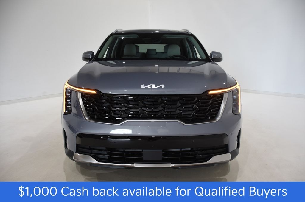 Price includes: $1000 - Sticker Sales Event Retail Bonus Cash. Exp. 01/02/2026 Priced below KBB Fair Purchase Price! Everlasting Silver This Sorento S is nicely equipped with 3rd row seats: split-bench, Active Cruise Control, Alloy wheels, Apple CarPlay & Android Auto, Auto High-beam Headlights, Automatic temperature control, Brake assist, Emergency communication system: 911 Connect, Exterior Parking Camera Rear, Front dual zone A/C, Fully automatic headlights, Heated door mirrors, Heated front seats, Navigation System, Power door mirrors, Power driver seat, Power windows, Radio: AM/FM Standard Sound System, Remote keyless entry, Security system, SynTex Artificial Leather Seat Trim, 4-Wheel Disc Brakes, 6 Speakers, ABS brakes, Air Conditioning, AM/FM radio: SiriusXM, Bumpers: body-color, Delay-off headlights, Driver door bin, Driver vanity mirror, Dual front impact airbags, Dual front side impact airbags, Electronic Stability Control, Four wheel independent suspension, Front anti-roll bar, Front Bucket Seats, Front Center Armrest, Front reading lights, Heated Front Bucket Seats, Illuminated entry, Knee airbag, Leather Shift Knob, Leather steering wheel, Low tire pressure warning, Occupant sensing airbag, Outside temperature display, Overhead airbag, Overhead console, Panic alarm, Passenger door bin, Passenger vanity mirror, Power steering, Radio data system, Rear anti-roll bar, Rear reading lights, Rear seat center armrest, Rear side impact airbag, Rear window defroster, Rear window wiper, Speed control, Speed-sensing steering, Split folding rear seat, Spoiler, Steering wheel mounted audio controls, Tachometer, Telescoping steering wheel, Tilt steering wheel, Traction control, Trip computer, Turn signal indicator mirrors, Variably intermittent wipers, and Wheels: 18" Gloss Black Alloy.