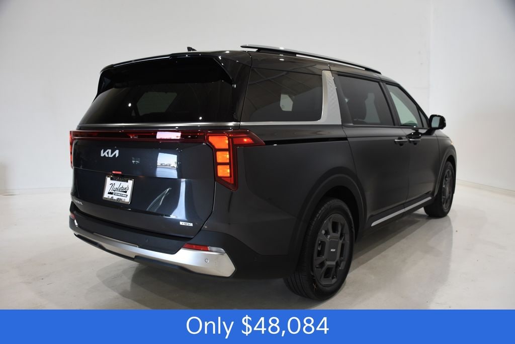 Panthera Metal This Carnival Hybrid SX is nicely equipped with Active Cruise Control, Alloy wheels, Apple CarPlay & Android Auto, Auto High-beam Headlights, Automatic temperature control, Brake assist, Compass, Emergency communication system, Exterior Parking Camera Rear, Front dual zone A/C, Front fog lights, Fully automatic headlights, Heated door mirrors, Heated front seats, Illuminated entry, Memory seat, Navigation System, Power 2nd-Row Moonroof, Power door mirrors, Power driver seat, Power Liftgate, Power moonroof, Power passenger seat, Power windows, Rain sensing wipers, Remote keyless entry, Security system, Ventilated front seats, 3rd row seats: split-bench, 4-Wheel Disc Brakes, 8 Speakers, ABS brakes, Air Conditioning, AM/FM radio: SiriusXM, Artificial Leather Seat Trim, Bumpers: body-color, Delay-off headlights, Driver door bin, Driver vanity mirror, Dual front impact airbags, Dual front side impact airbags, Electronic Stability Control, Four wheel independent suspension, Front anti-roll bar, Front Bucket Seats, Front Center Armrest, Front reading lights, Knee airbag, Leather Shift Knob, Leather steering wheel, Low tire pressure warning, Occupant sensing airbag, Outside temperature display, Overhead airbag, Overhead console, Panic alarm, Passenger door bin, Passenger vanity mirror, Power steering, Rear air conditioning, Rear anti-roll bar, Rear reading lights, Rear window defroster, Rear window wiper, Reclining 3rd row seat, Speed control, Speed-sensing steering, Split folding rear seat, Spoiler, Steering wheel mounted audio controls, Tachometer, Telescoping steering wheel, Tilt steering wheel, Traction control, Trip computer, Turn signal indicator mirrors, Variably intermittent wipers, and Wheels: 19" Black Alloy.