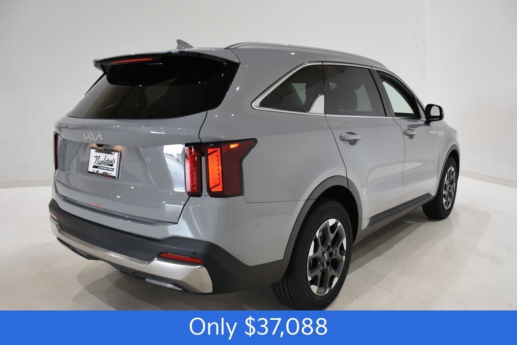 Price includes: $500 - Sticker Sales Event Retail Bonus Cash. Exp. 01/02/2026 Wolf Gray This Sorento S is nicely equipped with ABS brakes, Active Cruise Control, Alloy wheels, Electronic Stability Control, Front dual zone A/C, Heated door mirrors, Heated Front Bucket Seats, Heated front seats, Illuminated entry, Low tire pressure warning, Remote keyless entry, Traction control, 3rd row seats: split-bench, 4-Wheel Disc Brakes, 6 Speakers, Air Conditioning, AM/FM radio: SiriusXM, Apple CarPlay & Android Auto, Auto High-beam Headlights, Automatic temperature control, Brake assist, Bumpers: body-color, Delay-off headlights, Driver door bin, Driver vanity mirror, Dual front impact airbags, Dual front side impact airbags, Emergency communication system: 911 Connect, Exterior Parking Camera Rear, Four wheel independent suspension, Front anti-roll bar, Front Bucket Seats, Front Center Armrest, Front reading lights, Fully automatic headlights, Knee airbag, Leather Shift Knob, Leather steering wheel, Occupant sensing airbag, Outside temperature display, Overhead airbag, Overhead console, Panic alarm, Passenger door bin, Passenger vanity mirror, Power door mirrors, Power driver seat, Power steering, Power windows, Radio data system, Radio: AM/FM Standard Sound System, Rear anti-roll bar, Rear reading lights, Rear seat center armrest, Rear side impact airbag, Rear window defroster, Rear window wiper, Security system, Speed control, Speed-sensing steering, Split folding rear seat, Spoiler, Steering wheel mounted audio controls, SynTex Artificial Leather Seat Trim, Tachometer, Telescoping steering wheel, Tilt steering wheel, Trip computer, Turn signal indicator mirrors, Variably intermittent wipers, and Wheels: 18" Gloss Black Alloy.