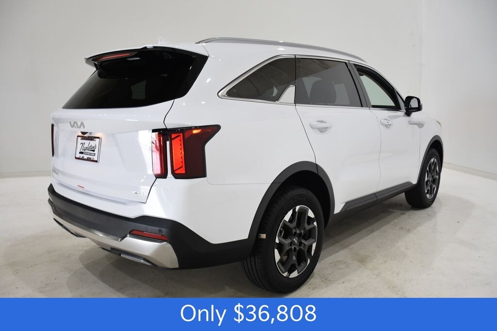 Price includes: $2500 - Kia Customer Cash. Exp. 05/04/2026 Priced below KBB Fair Purchase Price! Glacial White Pearl This Sorento S is nicely equipped with S Panoramic Sunroof Package (LED Interior Lighting), Active Cruise Control, Alloy wheels, Apple CarPlay & Android Auto, Auto High-beam Headlights, Automatic temperature control, Brake assist, Emergency communication system: 911 Connect, Exterior Parking Camera Rear, Front dual zone A/C, Fully automatic headlights, Heated door mirrors, Heated front seats, Power door mirrors, Power driver seat, Power windows, Remote keyless entry, Security system, 3rd row seats: split-bench, 4-Wheel Disc Brakes, 6 Speakers, ABS brakes, Air Conditioning, AM/FM radio: SiriusXM, Bumpers: body-color, Delay-off headlights, Driver door bin, Driver vanity mirror, Dual front impact airbags, Dual front side impact airbags, Electronic Stability Control, Four wheel independent suspension, Front anti-roll bar, Front Bucket Seats, Front Center Armrest, Front reading lights, Heated Front Bucket Seats, Illuminated entry, Knee airbag, Leather Shift Knob, Leather steering wheel, Low tire pressure warning, Occupant sensing airbag, Outside temperature display, Overhead airbag, Overhead console, Panic alarm, Passenger door bin, Passenger vanity mirror, Power steering, Radio data system, Radio: AM/FM Standard Sound System, Rear anti-roll bar, Rear reading lights, Rear seat center armrest, Rear side impact airbag, Rear window defroster, Rear window wiper, Speed control, Speed-sensing steering, Split folding rear seat, Spoiler, Steering wheel mounted audio controls, SynTex Artificial Leather Seat Trim, Tachometer, Telescoping steering wheel, Tilt steering wheel, Traction control, Trip computer, Turn signal indicator mirrors, Variably intermittent wipers, and Wheels: 18" Gloss Black Alloy.