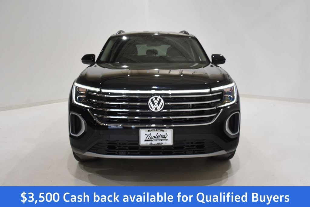 Price includes: $3500 - Retail Customer Bonus. Exp. 11/03/2025 This Atlas 2.0T SE w/Technology is nicely equipped with 3rd row seats, Active Cruise Control, Alloy wheels, Auto High-beam Headlights, Auto-dimming Rear-View mirror, Automatic temperature control, Brake assist, Emergency communication system: VW Car-Net Safe & Secure 5-year, Exterior Parking Camera Rear, Front dual zone A/C, Front fog lights, Fully automatic headlights, Heated door mirrors, Heated front seats, Power door mirrors, Power driver seat, Power Liftgate, Power windows, Rain sensing wipers, Remote keyless entry, Security system, Ventilated front seats, 4-Wheel Disc Brakes, 6 Speakers, ABS brakes, Air Conditioning, AM/FM radio: SiriusXM with 360L, Bumpers: body-color, Compass, Delay-off headlights, Driver door bin, Driver vanity mirror, Dual front impact airbags, Dual front side impact airbags, Electronic Stability Control, Four wheel independent suspension, Four-wheel Independent Suspension, Front anti-roll bar, Front Bucket Seats, Front Center Armrest, Front reading lights, Heated & Actively Ventilated Front Bucket Seats, Heated steering wheel, Illuminated entry, Low tire pressure warning, Occupant sensing airbag, Outside temperature display, Overhead airbag, Overhead console, Panic alarm, Passenger door bin, Passenger vanity mirror, Perforated V-Tex Leatherette Seating Surfaces, Power steering, Radio data system, Radio: MIB3 Composition Media, Rear air conditioning, Rear anti-roll bar, Rear reading lights, Rear seat center armrest, Rear window defroster, Rear window wiper, Speed control, Speed-sensing steering, Split folding rear seat, Spoiler, Steering wheel mounted audio controls, Tachometer, Telescoping steering wheel, Tilt steering wheel, Traction control, Trip computer, Turn signal indicator mirrors, Variably intermittent wipers, and Wheels: 20" 2-Tone Machined Alloy.