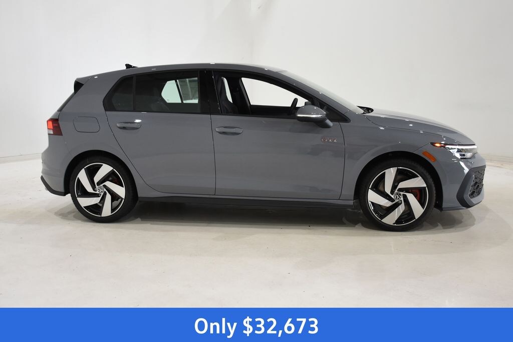This Golf GTI 2.0T S is nicely equipped with Active Cruise Control, Alloy wheels, Auto-dimming Rear-View mirror, Automatic temperature control, Brake assist, Exterior Parking Camera Rear, Forward collision: FCW w/Autonomous Emergency Braking mitigation, Front fog lights, Fully automatic headlights, Heated door mirrors, Heated front seats, Heated steering wheel, Lane Departure Warning System, Power door mirrors, Power driver seat, Power passenger seat, Power windows, Radio: MIB3 Discover Pro w/12.9" Touchscreen Navi, Rain sensing wipers, Remote keyless entry, Security system, 4-Wheel Disc Brakes, 7 Speakers, ABS brakes, Air Conditioning, AM/FM radio, Bumpers: body-color, Cloth Seating Surfaces w/Scalepaper Plaid Inserts, Compass, Delay-off headlights, Driver door bin, Driver vanity mirror, Dual front impact airbags, Dual front side impact airbags, Electronic Stability Control, Emergency communication system: VW Car-Net Safe & Secure 5-year, Four wheel independent suspension, Front anti-roll bar, Front Bucket Seats, Front Center Armrest, Front reading lights, Heated Front Top Sport Seats, Illuminated entry, Leather steering wheel, Low tire pressure warning, Occupant sensing airbag, Outside temperature display, Overhead airbag, Overhead console, Panic alarm, Passenger door bin, Passenger vanity mirror, Power steering, Radio data system, Rear anti-roll bar, Rear reading lights, Rear seat center armrest, Rear window defroster, Rear window wiper, Speed control, Speed-sensing steering, Speed-Sensitive Wipers, Split folding rear seat, Spoiler, Sport steering wheel, Steering wheel mounted audio controls, Tachometer, Telescoping steering wheel, Tilt steering wheel, Traction control, Trip computer, Turn signal indicator mirrors, Variably intermittent wipers, and Wheels: 18" 2-Tone Machined Alloy.