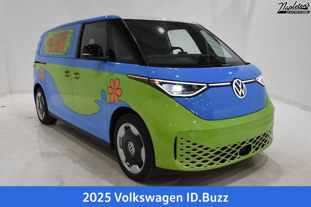 Price includes: $2500 - Retail Customer Bonus - EV . Exp. 11/03/2025 Custom Wrap Mystery Machine ID. Buzz PRO S, Active Cruise Control, Alloy wheels, Auto High-beam Headlights, Auto-dimming Rear-View mirror, Automatic temperature control, Brake assist, Emergency communication system: VW Car-Net Safe & Secure 5-year, Exterior Parking Camera Rear, Front dual zone A/C, Front fog lights, Fully automatic headlights, Heated door mirrors, Heated front seats, Heated rear seats, Illuminated entry, Memory seat, Navigation System, Power door mirrors, Power driver seat, Power Liftgate, Power passenger seat, Power windows, Rain sensing wipers, Remote keyless entry, Spoiler, Traction control, Turn signal indicator mirrors, Ventilated front seats, 3rd row seats: split-bench, 9 Speakers, ABS brakes, Air Conditioning, Bumpers: body-color, Delay-off headlights, Driver door bin, Driver vanity mirror, Driver's Seat Mounted Armrest, Dual front impact airbags, Dual front side impact airbags, Electronic Stability Control, Four wheel independent suspension, Front anti-roll bar, Front Bucket Seats, Front reading lights, Heated & Actively Ventilated Front Seats, Heated steering wheel, Leather steering wheel, Low tire pressure warning, Occupant sensing airbag, Outside temperature display, Overhead airbag, Panic alarm, Passenger door bin, Passenger seat mounted armrest, Passenger vanity mirror, Perforated V-Tex Leatherette Seating Surfaces, Power steering, Radio data system, Radio: Discover Pro Max w/Touchscreen Navigation, Rear air conditioning, Rear anti-roll bar, Rear reading lights, Rear window defroster, Rear window wiper, Speed control, Speed-sensing steering, Split folding rear seat, Steering wheel mounted audio controls, TBD Axle Ratio, Telescoping steering wheel, Tilt steering wheel, Trip computer, Variably intermittent wipers, and Wheels: 20" Two-Tone Disc Alloy.