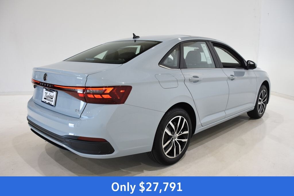 Price includes: $500 - Retail Customer Bonus. Exp. 11/03/2025 This Jetta 1.5T SE is nicely equipped with Sunroof Package (Power Tilting & Sliding Sunroof), Active Cruise Control, Alloy wheels, Auto-dimming Rear-View mirror, Automatic temperature control, Brake assist, Exterior Parking Camera Rear, Front dual zone A/C, Fully automatic headlights, Heated door mirrors, Power door mirrors, Power driver seat, Power windows, Radio: MIB3 Composition Media w/8" Touchscreen, Rain sensing wipers, Remote keyless entry, 4-Wheel Disc Brakes, 6 Speakers, ABS brakes, Active Blind Spot Monitor, Air Conditioning, AM/FM radio: SiriusXM with 360L, Bumpers: body-color, CloudTex & V-Tex Leatherette Seat Trim, Delay-off headlights, Driver door bin, Driver vanity mirror, Dual front impact airbags, Dual front side impact airbags, Electronic Stability Control, Emergency communication system: VW Car-Net Safe & Secure 5-year, Front anti-roll bar, Front Bucket Seats, Front Center Armrest, Front wheel independent suspension, Heated Front Seats, Heated front seats, Illuminated entry, Leather Shift Knob, Leather steering wheel, Low tire pressure warning, Occupant sensing airbag, Outside temperature display, Overhead airbag, Overhead console, Panic alarm, Passenger door bin, Passenger vanity mirror, Power steering, Radio data system, Rear anti-roll bar, Rear reading lights, Rear seat center armrest, Rear window defroster, Speed control, Speed-sensing steering, Split folding rear seat, Steering wheel mounted audio controls, Tachometer, Telescoping steering wheel, Tilt steering wheel, Traction control, Trip computer, Variably intermittent wipers, and Wheels: 17" Twin 5-Spoke 2-Tone Machined Alloy.
