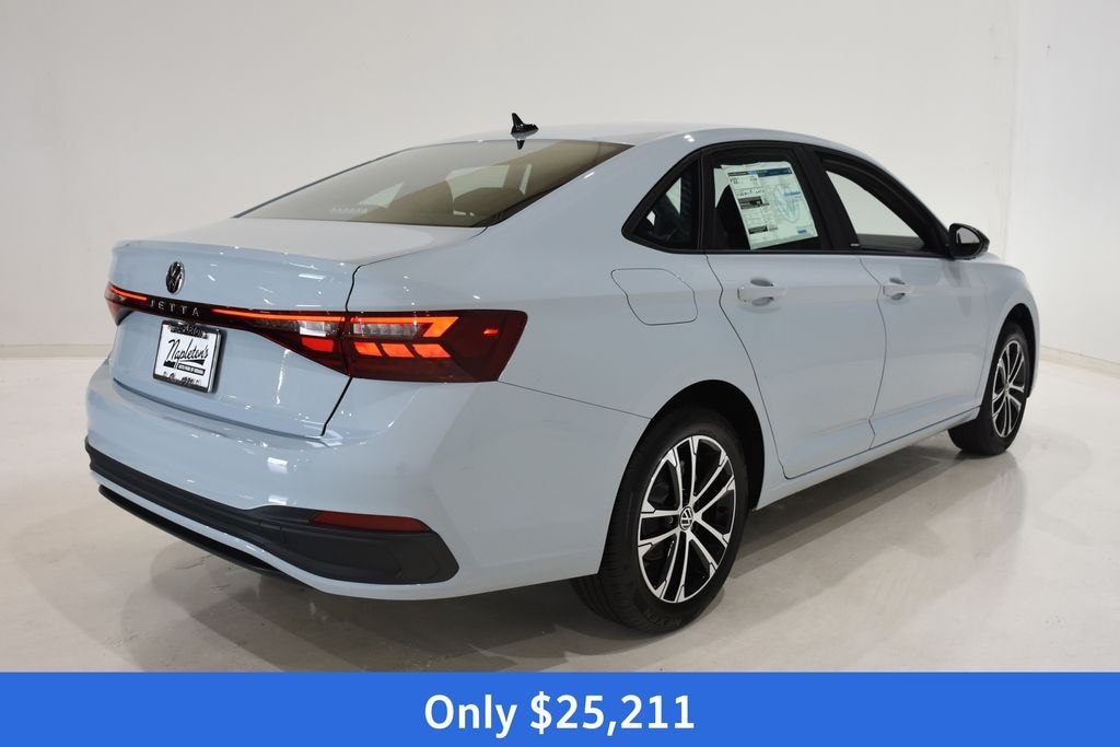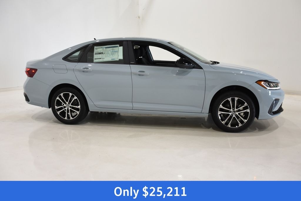 Price includes: $500 - Retail Customer Bonus. Exp. 11/03/2025 This Jetta 1.5T Sport is nicely equipped with Active Cruise Control, Alloy wheels, Auto-dimming Rear-View mirror, Automatic temperature control, Brake assist, Exterior Parking Camera Rear, Front dual zone A/C, Fully automatic headlights, Heated door mirrors, Heated Front Seats, Power door mirrors, Power windows, Radio: MIB3 Composition Color w/8" Touchscreen, Rain sensing wipers, Remote keyless entry, 4 Speakers, 4-Wheel Disc Brakes, ABS brakes, Active Blind Spot Monitor, Air Conditioning, Bumpers: body-color, Cloth Seat Trim, Delay-off headlights, Driver door bin, Driver vanity mirror, Dual front impact airbags, Dual front side impact airbags, Electronic Stability Control, Emergency communication system: VW Car-Net Safe & Secure 5-year, Front anti-roll bar, Front Bucket Seats, Front Center Armrest, Front wheel independent suspension, Heated front seats, Illuminated entry, Leather Shift Knob, Leather steering wheel, Low tire pressure warning, Occupant sensing airbag, Outside temperature display, Overhead airbag, Overhead console, Panic alarm, Passenger door bin, Passenger vanity mirror, Power steering, Radio data system, Rear anti-roll bar, Rear reading lights, Rear seat center armrest, Rear window defroster, Speed control, Speed-sensing steering, Split folding rear seat, Steering wheel mounted audio controls, Tachometer, Telescoping steering wheel, Tilt steering wheel, Traction control, Trip computer, Variably intermittent wipers, and Wheels: 17" 2-Tone Machined Alloy.