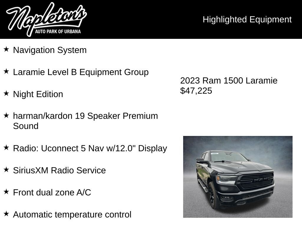Elevate your driving experience and make a bold statement with this 2023 Ram 1500 Laramie Night Edition. Visit our showroom today to take this remarkable truck for a test drive and discover the true meaning of power, style, and innovation.