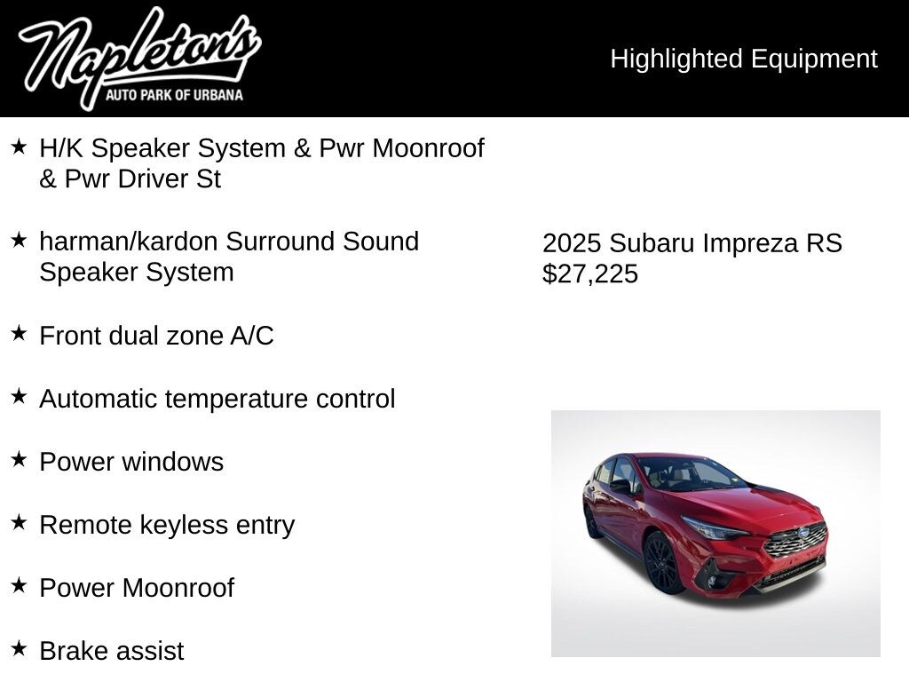 This 2025 Subaru Impreza 2.5RS is a true testament to Subaru's commitment to engineering excellence. With its striking design, impressive performance, and uncompromising attention to detail, it's the perfect companion for your next adventure. Visit our showroom today and experience the difference for yourself.