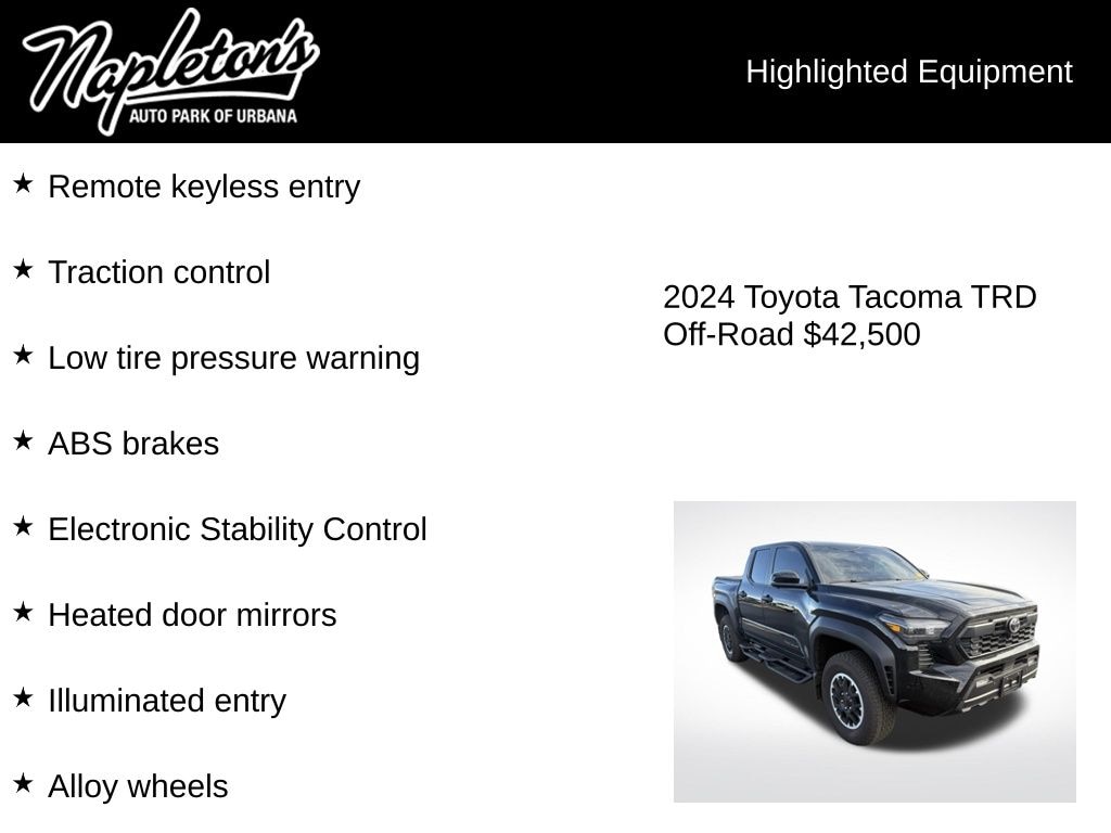Don't miss your chance to own this exceptional vehicle. Schedule a test drive today and discover the power and capabilities that the 2024 Toyota Tacoma TRD Off-Road Premium Package & Towing Technology Packages has to offer.